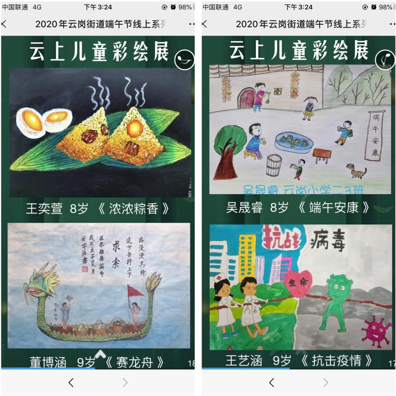 “往年端午節,都是在線(xiàn)下以各種形式舉辦活動(dòng),弘揚家國情懷、感受中華優(yōu)秀傳統文化、寄托美好愿望。疫情期間,為防止人流密集、保證居民身體健康,目前還不能開(kāi)展聚集性活動(dòng),通過(guò)‘互聯(lián)網(wǎng)+文化’的形式,讓轄區居民朋友們匯聚‘云端’,在感受傳統文化魅力的同時(shí),學(xué)習防疫知識,用聲音、用畫(huà)筆為抗疫加油鼓勁!”云崗街道辦事處社區建設辦公室副主任李明輝說(shuō)。