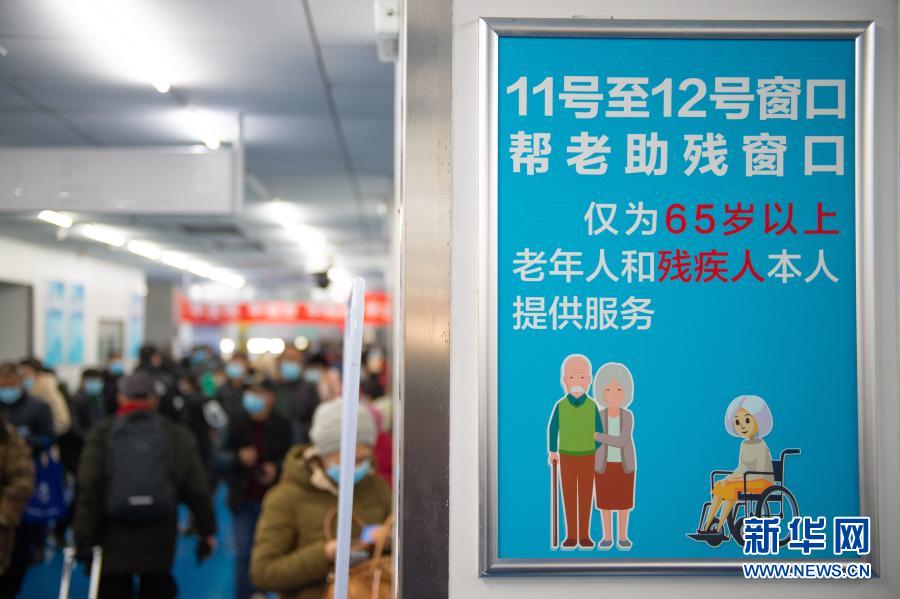 首都醫科大學(xué)附屬宣武醫院門(mén)診大廳里立起了“幫老助殘窗口”引導牌(12月10日攝)。