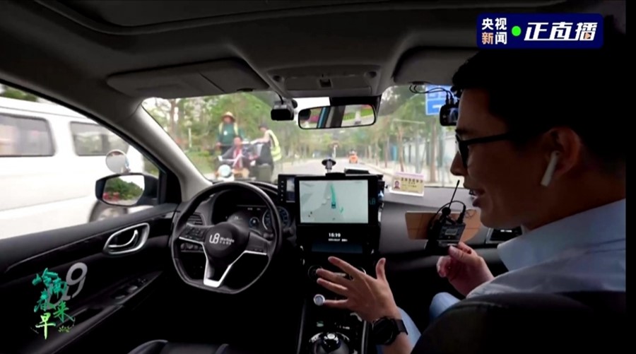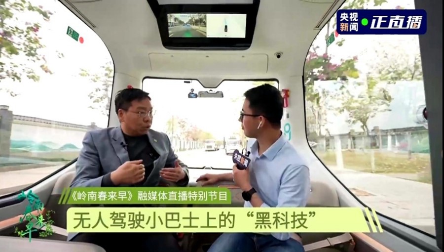 直播中,總臺記者走進(jìn)同時(shí)落地無(wú)人駕駛汽車(chē)和無(wú)人駕駛巴士的廣州生物島,使用手機軟件叫車(chē),一路分享新鮮體驗感受,并與自動(dòng)駕駛領(lǐng)軍企業(yè)文遠知行首席運營(yíng)官張力暢談無(wú)人駕駛技術(shù)里的“黑科技”。