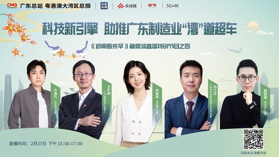 2月26日至2月28日,中央廣播電視總臺廣東總站暨粵港澳大灣區總部推出六期融媒體直播特別節目《嶺南春來(lái)早》,通過(guò)央視新聞、央廣網(wǎng)、央視頻等總臺新媒體平臺,展現廣東在開(kāi)局之年主動(dòng)作為的奮戰場(chǎng)面。