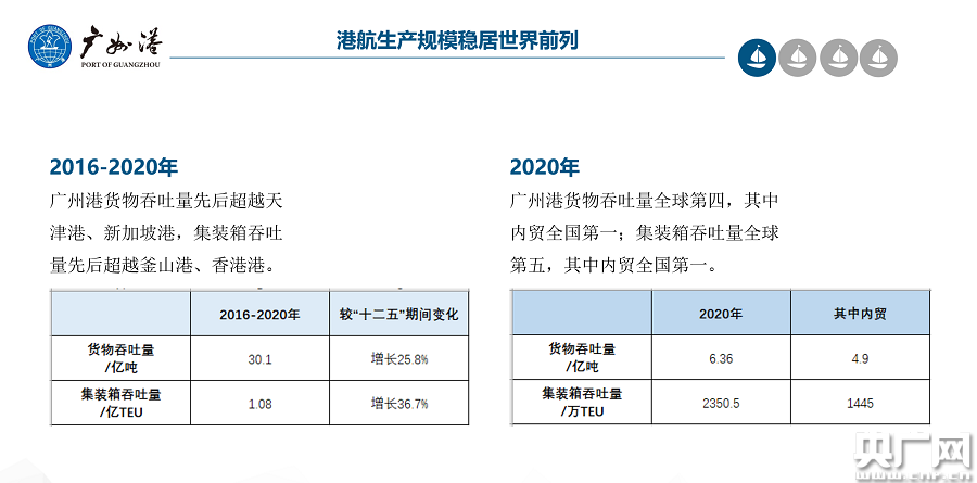 廣州港2016年-2020年港航規模情況。(央廣網(wǎng)發(fā) 廣州市港務(wù)局供圖)