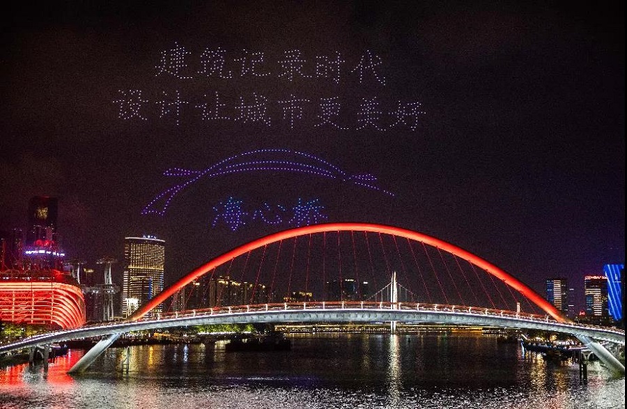 無(wú)人機編隊飛行宛如珠江水上的夜明珠