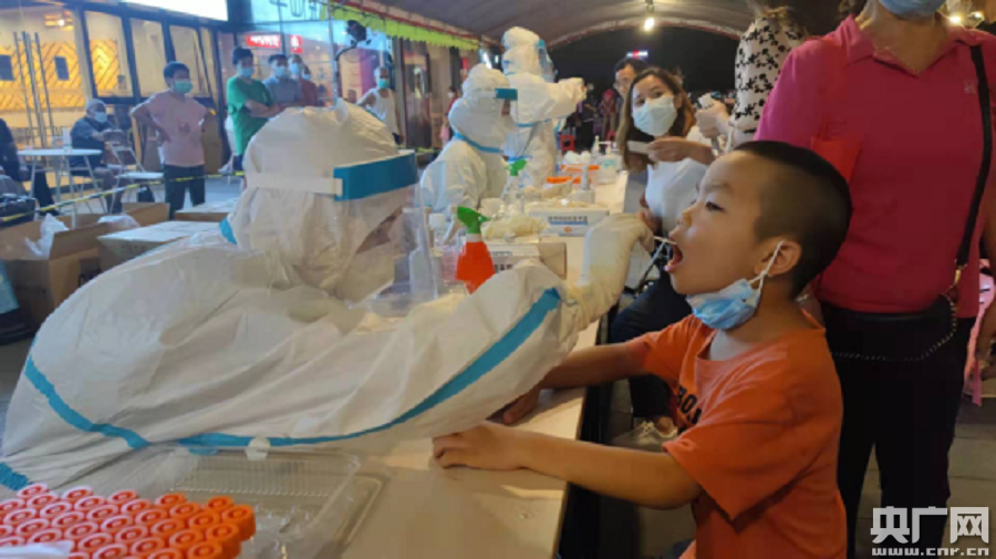 桂城富力金融中心核酸檢測采樣現場(chǎng)(央廣網(wǎng)發(fā) 陳仲華攝)