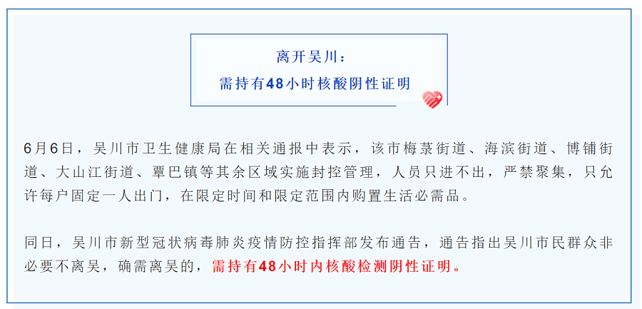 近日,廣東省內疫情出現反彈,6月6日,吳川市確診一名無(wú)癥狀感染者,疫情防控形勢嚴峻,省、市相關(guān)部門(mén)對旅客出行作出最新指示。
