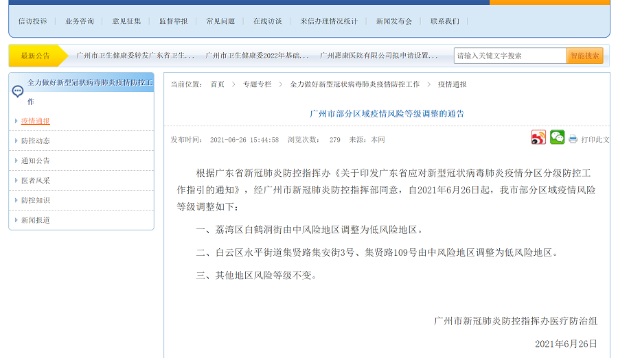 2、荔灣區白鶴洞街由中風(fēng)險地區調整為低風(fēng)險地區。