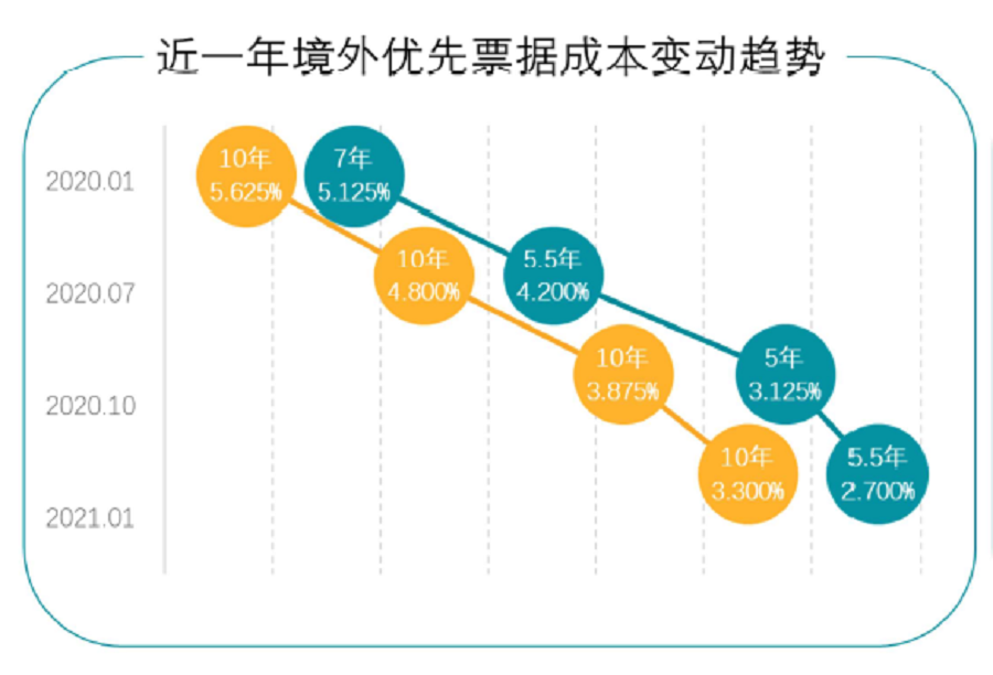 報告期末,碧桂園的平均融資成本為5.56%,較2019年底下降78個(gè)基點(diǎn)。2021年1月發(fā)行的5億美元5.5年期票據和7億美元10年期票據的利率更是分別為2.7%、3.3%,創(chuàng )民營(yíng)房企發(fā)債融資成本之新低。在行業(yè)整體融資趨緊的背景下,碧桂園以超低成本發(fā)債融資,充分顯示集團穩健的財務(wù)盤(pán)面在資本市場(chǎng)上擁有的競爭實(shí)力。
