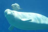 小白鯨“小五”與媽媽在玩耍。(央廣網(wǎng)發(fā) 主辦方供圖)