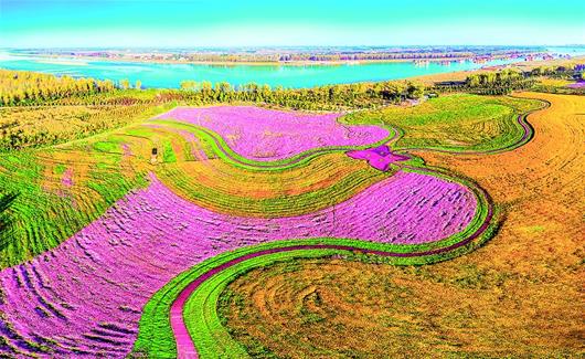 11月10日,花海簇擁下的藍星島生態(tài)景觀(guān)。位于江陵縣馬家寨鄉的藍星島是由長(cháng)江泥沙淤積而成的江心洲,總面積5000畝。藍星島將生態(tài)優(yōu)先擺在壓倒性位置,已建成蘆葦公園、七彩花田、花果園、生態(tài)牧場(chǎng)等景觀(guān)帶,為生態(tài)長(cháng)江再添美景。