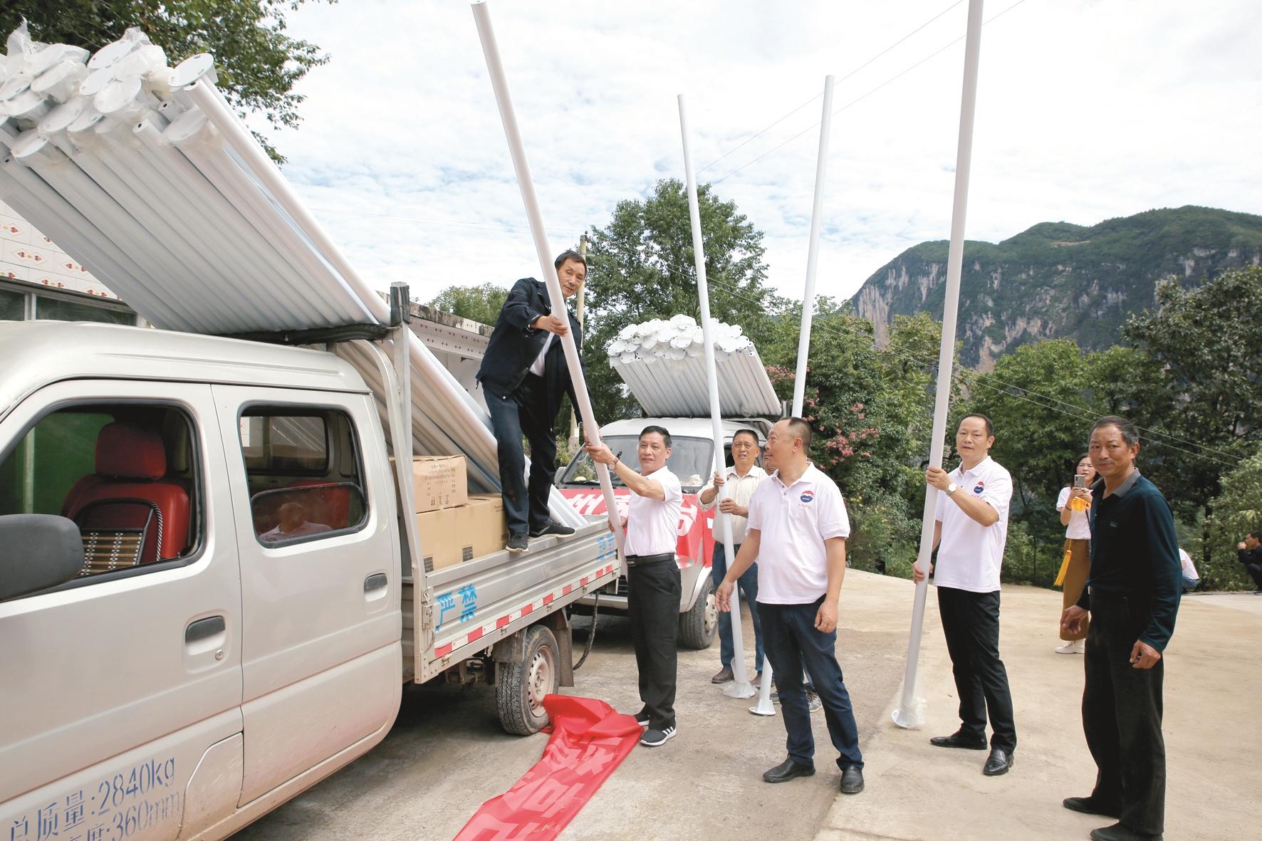 9月15日,驅車(chē)5個(gè)多小時(shí),李先龍和朋友們開(kāi)著(zhù)貨車(chē)將118盞智能化太陽(yáng)能路燈送到了石柱山村下卜龍片區。16日晚,小山村第一次亮起來(lái),整齊耀眼的路燈,猶如一串璀璨的夜明珠,倒映在清江之上,波光瀲滟。
