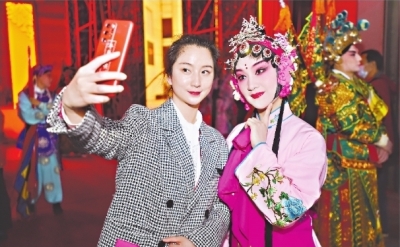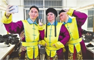 福建省龍巖市漢劇傳習中心演員演出前在后臺自拍。