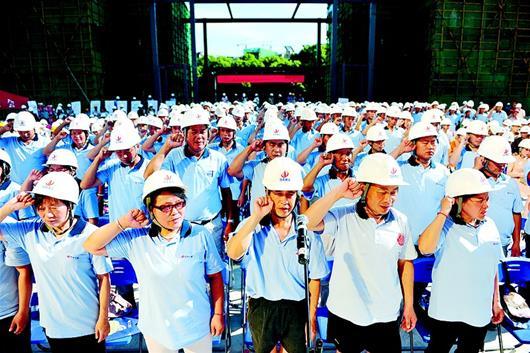 圖為:中天建設集團舉行工會(huì )新會(huì )員集體入會(huì )宣誓。