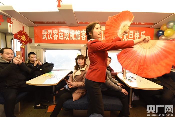 武漢客運段城際動(dòng)車(chē)組車(chē)間黨總支書(shū)記章瓊表示,武漢客運段一直致力于打造精品文化列車(chē),2018年元旦來(lái)臨之際舉辦這個(gè)活動(dòng)是為了讓旅客展望新年,感受祝福,讓旅途更加溫馨溫暖,如同高速發(fā)展的中國鐵路一般,駛向美好的未來(lái)。