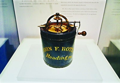 眾多展品中,兩件發(fā)明專(zhuān)利模型格外受人關(guān)注。一件是1877年發(fā)明的“改進(jìn)型冰激凌冷藏器”。美國當時(shí)的冰激凌機改進(jìn)需求很大。這件發(fā)明的工作原理是冷藏器向一個(gè)方向移動(dòng),攪拌器同時(shí)向相反方向移動(dòng),從而提高制作效率。