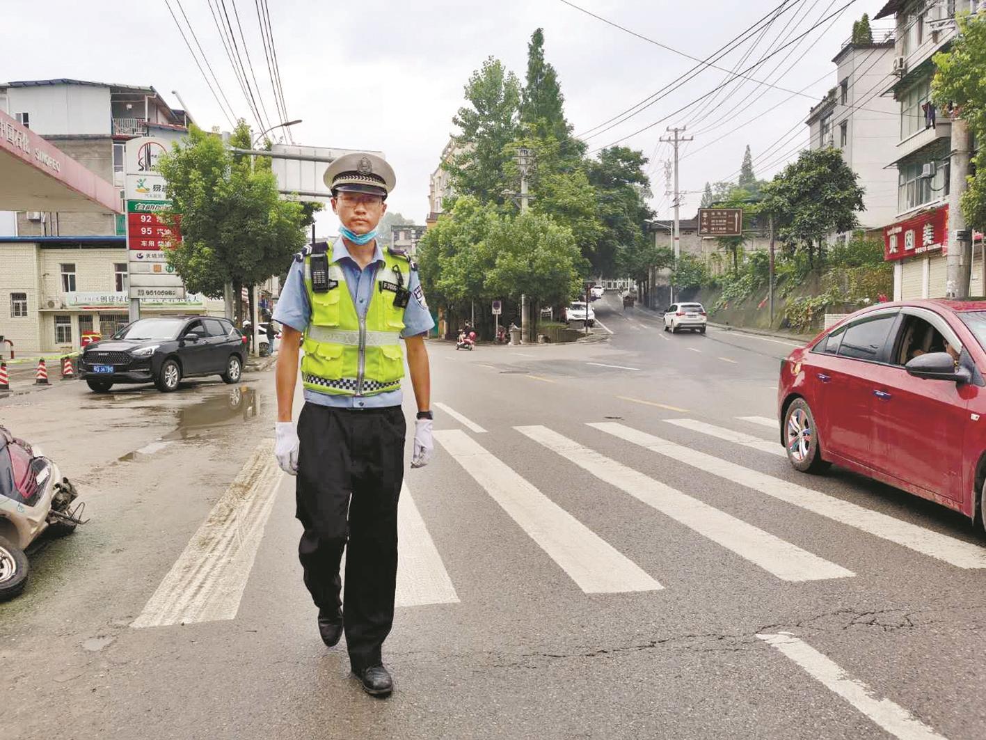 “他日常工作就是街面執勤巡邏,小伙很敬業(yè)!闭勂鹂岛,六角亭交警中隊中隊長(cháng)岳艷對他平時(shí)的工作非?隙。1999年出生的康弘很靦腆,參加工作有兩年了,葉挺路是他日常巡邏的區域!扒皫状伟l(fā)大水,我看見(jiàn)他經(jīng)常都是光著(zhù)腳在附近巡邏,維持秩序!睙嵝氖忻裥芘肯蛴浾哒f(shuō)道。