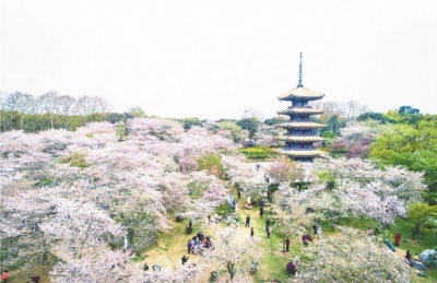 3月23日,武漢東湖櫻園,一萬(wàn)余株櫻花盛放,游人如織。