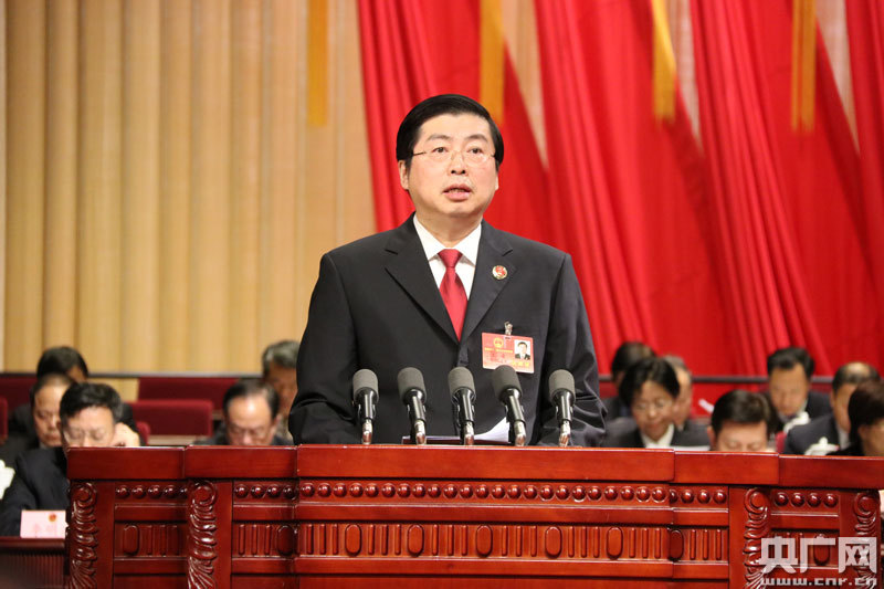 省人民檢察院檢察長(cháng)王晉向大會(huì )報告工作(記者張卓 攝)