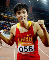 劉翔,中國著(zhù)名田徑運動(dòng)員,現就讀于上海華東師范大學(xué)。曾獲獎項包括一枚奧運會(huì )金牌(2004雅典)、六枚世錦賽獎牌和兩枚亞運會(huì )金牌,并曾打破世界紀錄(成績(jì)12秒88),是110米欄史上第一位同時(shí)集奧運會(huì )冠軍、世錦賽冠軍、世界紀錄(現已被破)于一身的選手。