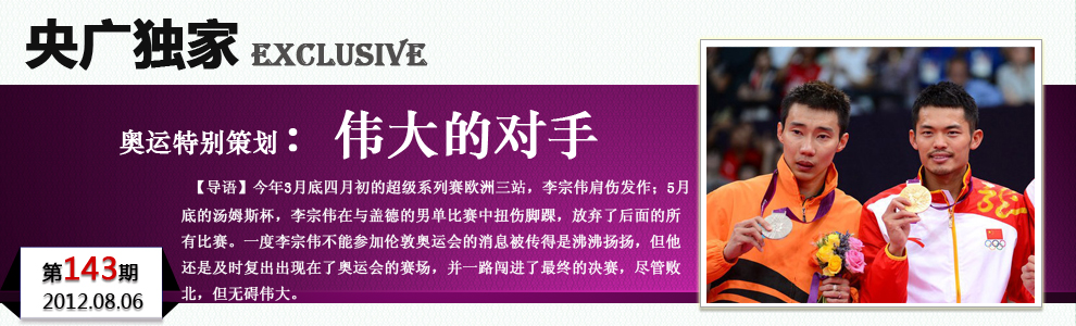 * 李宗偉:因受傷只準備兩星期 兩屆第2這是我的命 * 白巖松:林丹李宗偉瑜亮爭輝 弱項突破最可貴 |