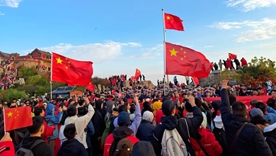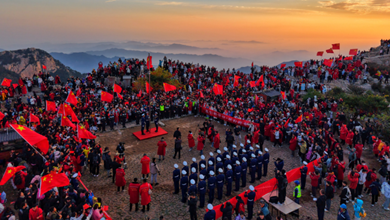 山東:萬(wàn)人見(jiàn)證泰山之巔“中國紅”