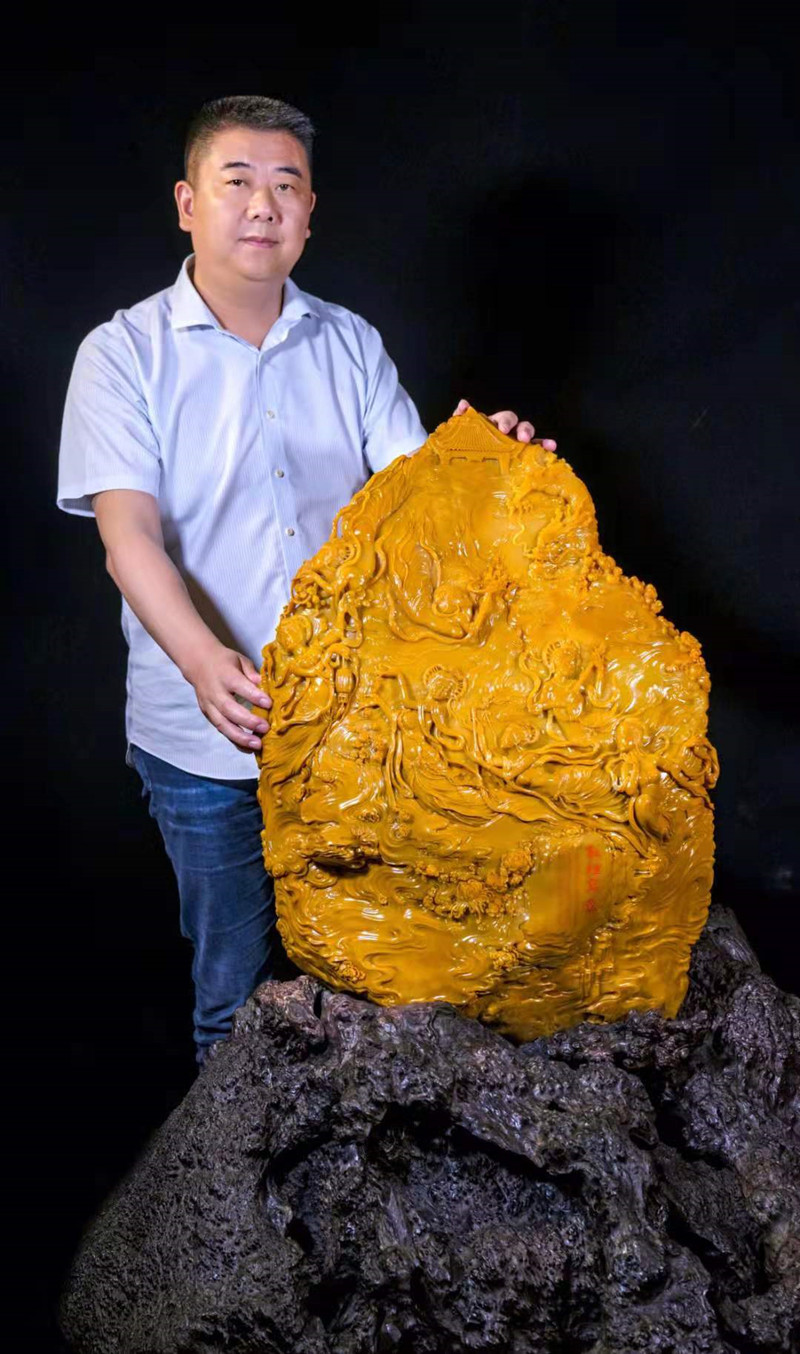 記者了解到,該美術(shù)館位于上海楊浦濱江的地標建筑東方漁人碼頭內,一期展覽面積達3000平方米左右。目前展館藏品共分為國石、瓷器、書(shū)畫(huà)三大板塊。在國石展區,主要展示了包括壽山石、青田石、昌化石、巴林石在內的100多件石雕作品。其中,最大的一塊昌化田黃雞血石“大地之心”,重達13000克。此外,館內展藏的昌化老坑雞血“祥云瑞鶴”,青田龍蛋石“普天同慶”和“江山如此多嬌”等大型石雕作品,由倪東方、張愛(ài)廷、林觀(guān)博、徐偉軍、葉子賢等30多位國家級工藝美術(shù)大師精心雕刻而成,展現了大國工匠精神;在瓷器展區,主要展示清代康熙、乾隆、雍正三代的150余件御用瓷器,其中有乾隆時(shí)期的“黃地洋彩福壽富貴描金雙獸耳盤(pán)口投壺”等名器。
