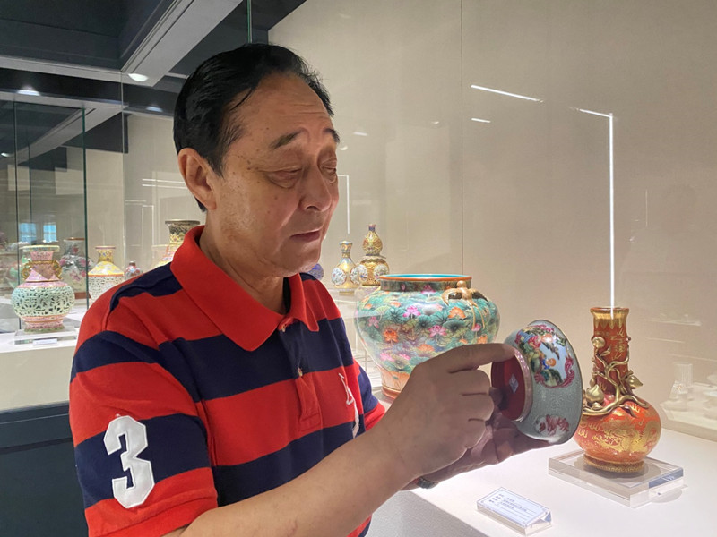 陶瓷評鑒專(zhuān)家丘小君先生在品鑒瓷器