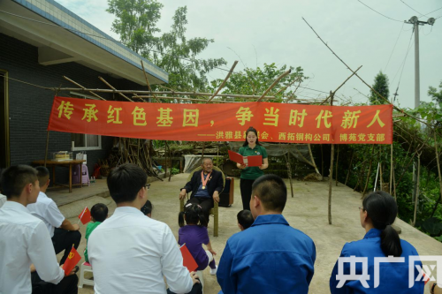 央廣網(wǎng)北京6月22日消息(記者 陳祥銳 通訊員 朱小根 林國強)黨旗迎風(fēng)飄揚,黨徽金光閃耀。6月21日,在四川省眉山市洪雅縣余坪鎮黃里村1組,光榮在黨69年、百歲老人、志愿軍老戰士宋加銀家里,由洪雅縣余坪鎮黨委政府、洪雅縣新聯(lián)會(huì )愛(ài)心企業(yè)四川西拓鋼構公司、博苑幼兒園黨支部聯(lián)合開(kāi)展的“傳承紅色基因,爭當時(shí)代新人”活動(dòng),老黨員、青年黨員、新階層代表和少年兒童歡聚一堂,追憶紅色歲月,同慶黨的生日,一起過(guò)政治生日。