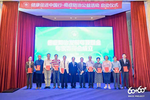 中國健康促進(jìn)基金會(huì )常務(wù)副理事長(cháng)兼秘書(shū)長(cháng)徐卸古、中國健康促進(jìn)基金會(huì )副秘書(shū)長(cháng)兼癌癥防治發(fā)展專(zhuān)項基金管理委員會(huì )副主任委員席立鎖、中國健康促進(jìn)基金會(huì )癌癥防治發(fā)展專(zhuān)項基金管理委員會(huì )主任委員崔寶善、中國健康促進(jìn)基金會(huì )癌癥防治發(fā)展專(zhuān)項基金專(zhuān)家委員會(huì )副主任委員張景紅、廣東白澤健康科技有限公司董事長(cháng)白宗科、上海市品牌授權經(jīng)營(yíng)企業(yè)協(xié)會(huì )創(chuàng )始人楊云、上海市癌癥康復俱樂(lè )部袁正平共同啟動(dòng)“健康促進(jìn)中國行-癌癥防治公益活動(dòng)”。