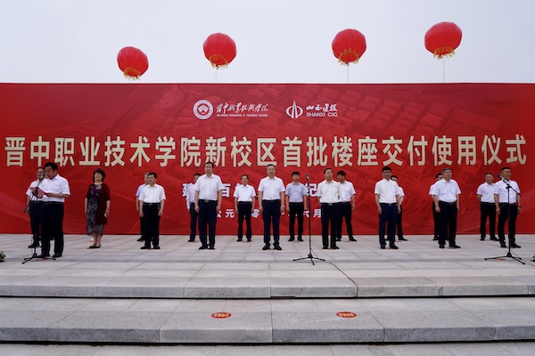 在當天的交付使用儀式上,晉中市委書(shū)記吳俊清宣布首批樓座正式交付使用。晉中市住建局局長(cháng)游躍軍向晉中職業(yè)技術(shù)學(xué)院黨委書(shū)記吳文勝遞交竣工標志牌并交接鑰匙。