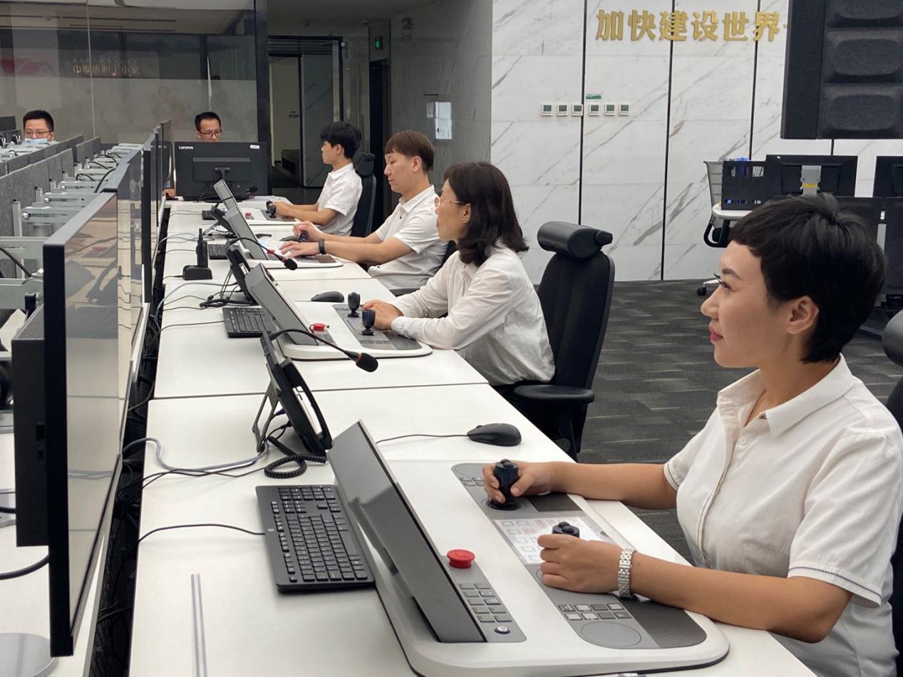 天津港集裝箱有限公司北區場(chǎng)岸橋隊遠程自動(dòng)化操控司機丁亞楠在中央控制室,遠程指揮,只見(jiàn)她輕點(diǎn)鼠標,1500米外,從天而降的吊具就把一個(gè)集裝箱從貨車(chē)上移到了場(chǎng)地,只用了大約2分鐘。