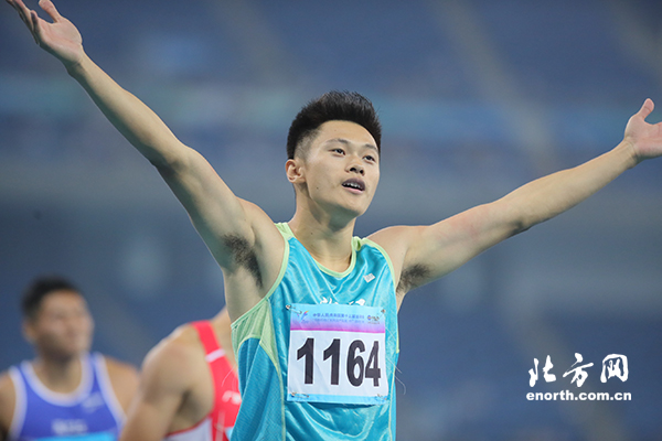 接近完美的起跑,沒(méi)有絲毫停頓的彎道轉直道以及令人振奮的最后沖刺,這種種聚集在一起凝聚成一個(gè)全新的全國紀錄。奪冠后的謝震業(yè)雙手指天,享受勝利所帶來(lái)的喜悅。5日的夜晚,謝震業(yè)再次跑出最好的自己,在跑道上他盡情展現風(fēng)采,將年輕人追逐夢(mèng)想的姿態(tài)展現的淋漓盡致。