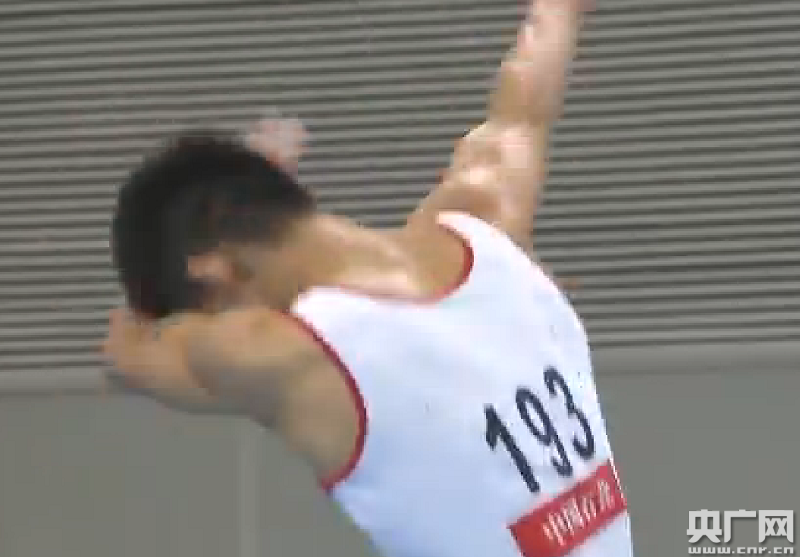 此時(shí)的林超攀總分僅次于穆濟勒排在第二,而緊隨林超攀出場(chǎng)的天津隊另一名選手孫冰,很快就奪走了他第二的位置。孫冰使用了一個(gè)直體后空翻兩周轉體360度開(kāi)場(chǎng),瀟灑的完成贏(yíng)得了主場(chǎng)觀(guān)眾熱烈的掌聲,之后的團身后空翻兩周轉體720、900360度都完成順利。巧合的是,孫冰最后選擇的結束動(dòng)作也是直體后空翻轉體1080度,同樣穩穩落地,可惜雙腿在落地時(shí)略有分開(kāi)。難度分6.2,完成分8.700,總分14.900分。