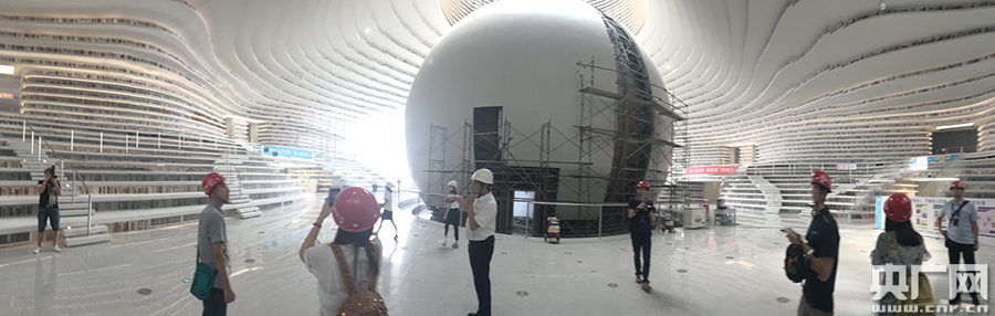 走入濱海文化中心正門(mén),可以看到的是有“濱海之眼”之稱(chēng)的濱海圖書(shū)館,圖書(shū)館最大的特點(diǎn)是其內部的球形多功能廳。這個(gè)球形多功能廳外部建成了一個(gè)穹幕影院,40萬(wàn)個(gè)LED燈珠將鑲嵌在全穿孔鋁板上,大球的外部可以播放電影。大球內部則是濱海圖書(shū)館的報告廳,廳內可容納將近100人,并采用可伸縮座椅設計。目前,該圖書(shū)館已經(jīng)運進(jìn)入18萬(wàn)冊圖書(shū),而后續藏書(shū)量可達130萬(wàn)冊。