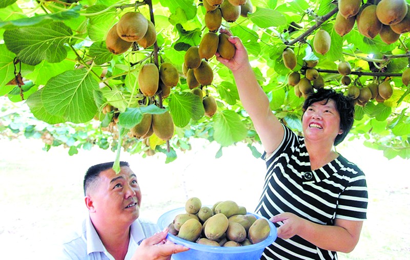 采摘獼猴桃。