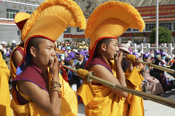 8月25日,演員在第十四屆西藏珠峰文化旅游節開(kāi)幕式上表演斯馬卓舞。當日,以“情系珠峰 吉祥日喀則”為主題的第十四屆西藏珠峰文化旅游節在日喀則市開(kāi)幕,兩千多名演職人員為觀(guān)眾獻上斯馬卓、欽諧、索舞等精彩表演。