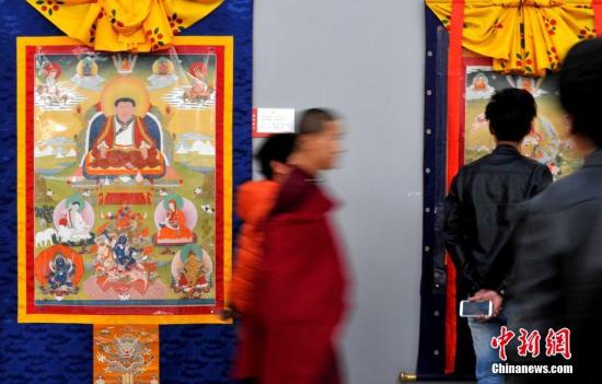 圖為觀(guān)眾欣賞展覽中的唐卡。 李林 攝