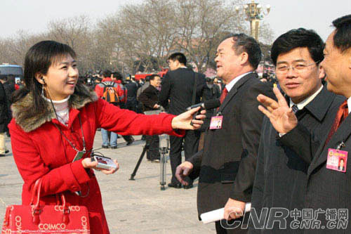 中央臺記者劉玉蕾在采訪(fǎng)政協(xié)委員